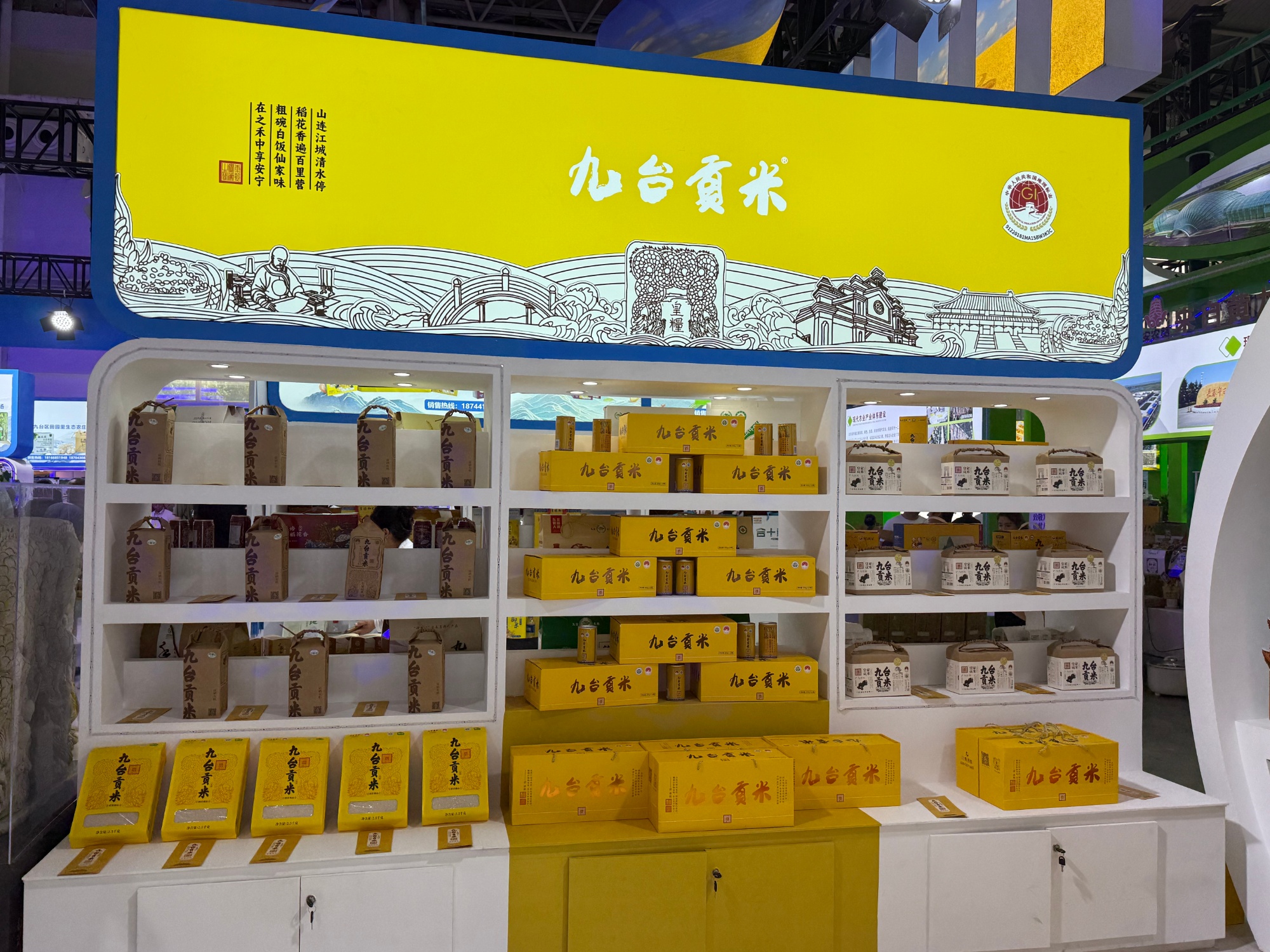 农博会期间,九台展区坐落农博园2号展厅A5展位,45家企业参展,设快闪店、直播区等功能区,招引很多游客。